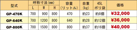 ![]() 大型サイズGP-800Kには45Lゴミ袋が約16個入ります。 |